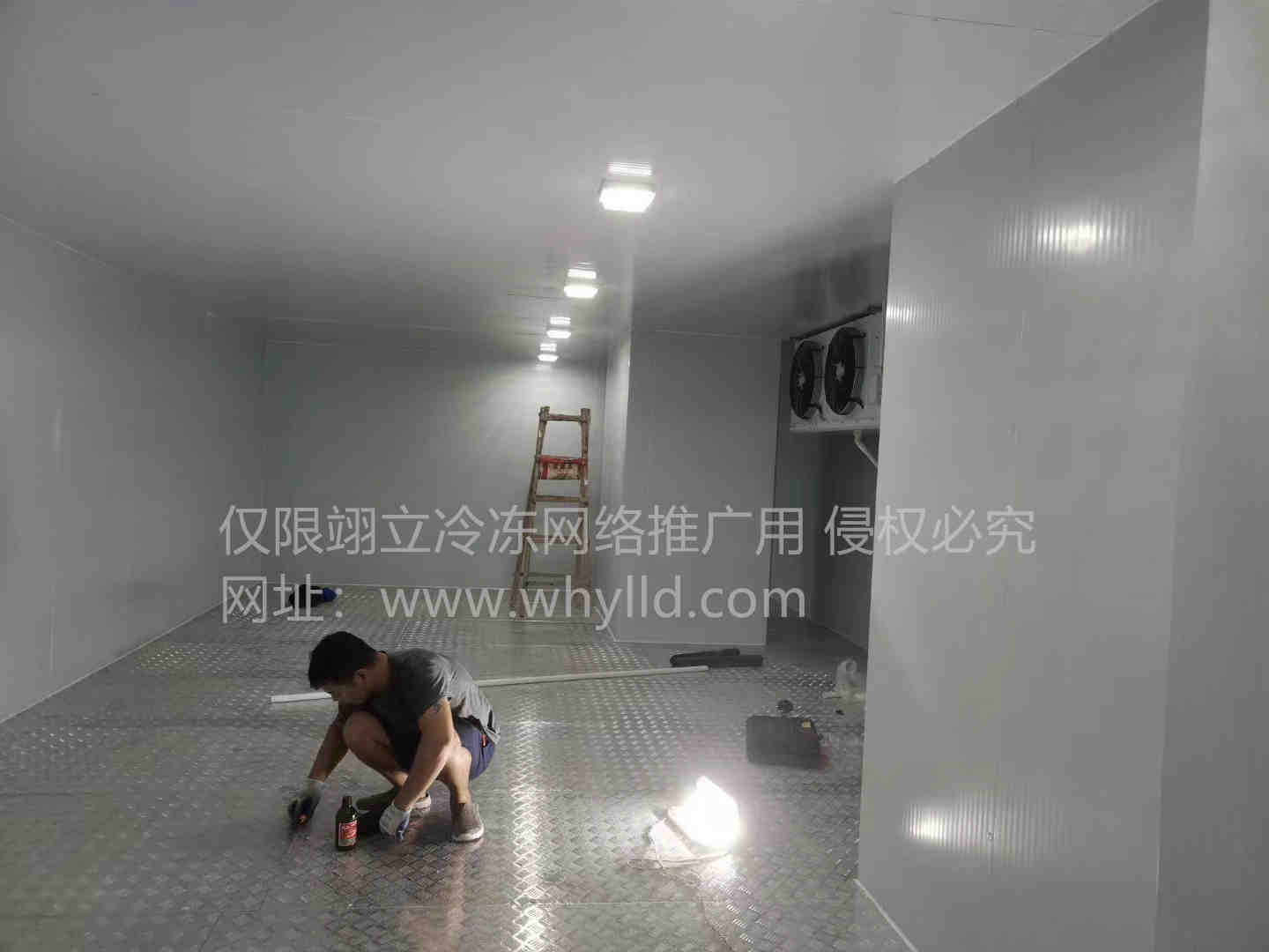 地面保溫:庫體保溫:150mm厚聚氨酯冷庫板,密度40±2kg/m3,雙面0.5mm彩鋼板,B2級(jí)阻燃;